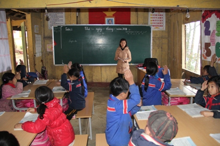 Thầy cô giáo và các em học sinh Trường THCS Bản Khoang đã có thể yên tâm dạy và học trong ngôi trường mới.