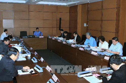 | Đoàn đại biểu Quốc hội tỉnh Sơn La, Lạng Sơn, Sóc Trăng và Quảng trị thảo luận ở tổ. Ảnh: Nguyễn Dân - TTXVN. |