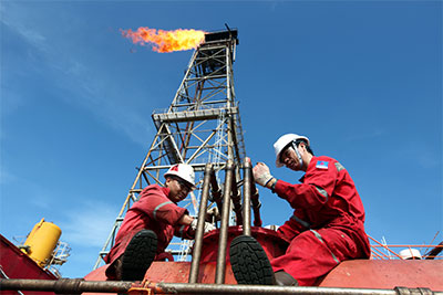 Người lao động PVEP trên giàn khai thác mỏ Đại Hùng, ngoài khơi Việt Nam.