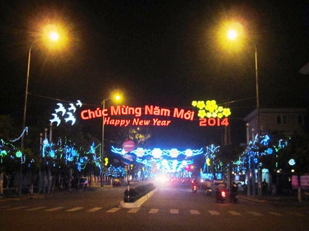 Những ngày giáp Tết phố biển Nha Trang (tỉnh Khánh Hòa) được thay màu áo mới. Hầu hết các tuyến đường chính được trang hoàng ánh đèn điện lung linh bằng dòng chữ “Chúc mừng năm mới”, “Happy New Year”...