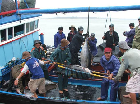 | Ngư dân Phú Yên đánh bắt cá ngừ đại dương ở vùng biển Hoàng Sa, Trường Sa của Việt Nam. |
