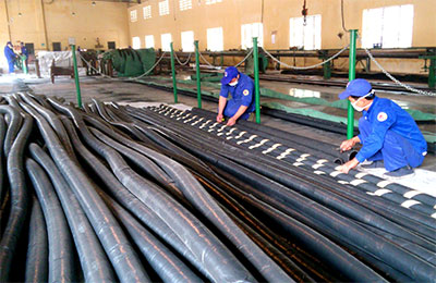 Công nhân Nhà máy Z175 kiểm tra ống cao su kỹ thuật trước khi xuất xưởng.