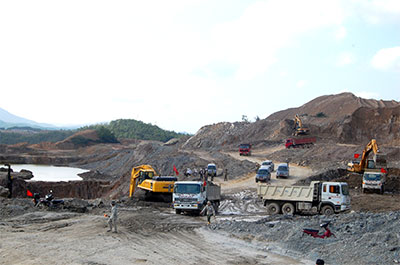Khí thế lao động của Tổng công ty Xây dựng Trường Sơn trên công trường xây dựng hồ thủy lợi Tả Trạch.