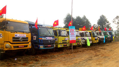 Lực lượng xe cơ giới của Tổng công ty Xây dựng Lũng Lô ra quân thi công hầm đường bộ Đèo Cả.