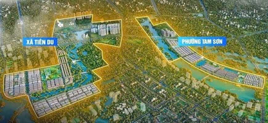 | Quần thể dự án đô thị du lịch, sinh thái ở phường Tam Sơn và xã Tiên Du (Bắc Ninh). Ảnh: Bacninhtech |