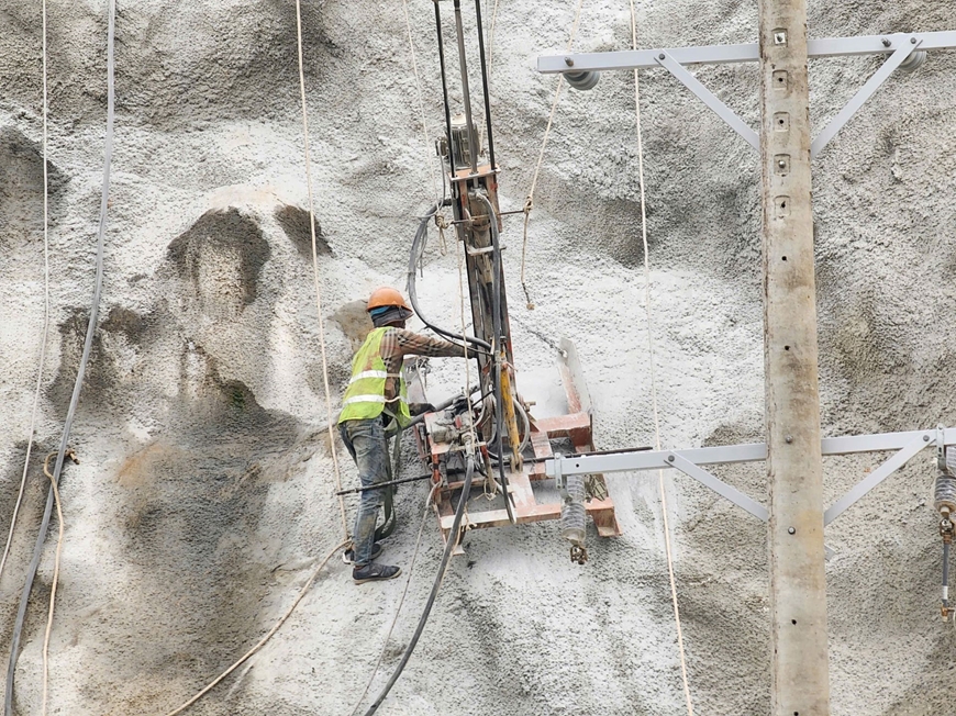 Hiện tại, các hạng mục tại công trường đang thuộc giai đoạn 2, trong đó đáng kể nhất là hạng mục khoan hầm xuyên núi để triển khai khu vực đặt các tổ máy và đường dẫn nước áp lực…