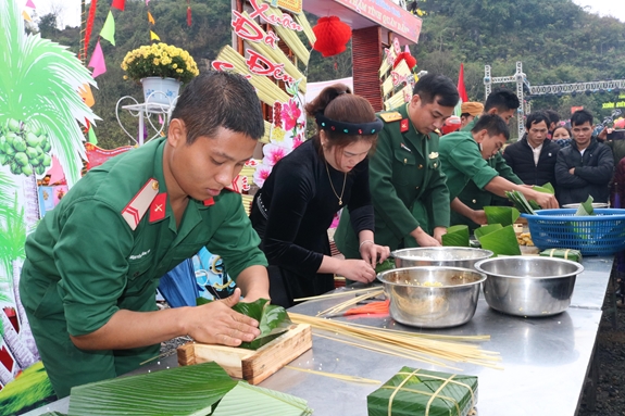 Cán bộ, chiến sĩ Trung đoàn 12, Sư đoàn 3 (Quân khu 1) vui đón Tết Kỷ Hợi 2019 cùng đồng bào các dân tộc xã Quốc Khánh (Tràng Định, Lạng Sơn). Ảnh: Hồng Sáng.
