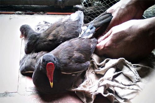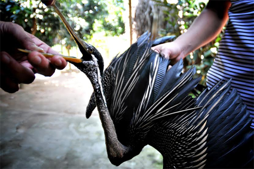 Chim điên điển cổ rắn (có tên trong sách đỏ Việt Nam) cũng bị dính bẫy.