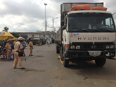CSGT TP Hồ Chí Minh phối hợp cùng các lực lượng kiểm tra tải trọng phương tiện trên Quốc lộ 1.