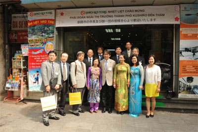QĐND Online - Nhân kỷ niệm 40 năm thiết lập quan hệ ngoại giao Việt Nam-Nhật Bản, vừa qua, Phái đoàn thị trưởng thành phố Kushiro thuộc tỉnh Hokkaido (Nhật Bản) đến thăm và làm việc tại Việt Nam nhằm tìm kiếm cơ hội hợp tác du lịch giữa Việt Nam và thành phố Kushiro. Đoàn đã làm việc với Tổng cục Du lịch Việt Nam, đặc biệt, đoàn còn dành thời gian để tham quan và làm việc tại Công ty HaNoi Redtour, một trong những công ty du lịch lớn ở Việt Nam để trao đổi kinh nghiệm cũng như mở rộng hợp tác.