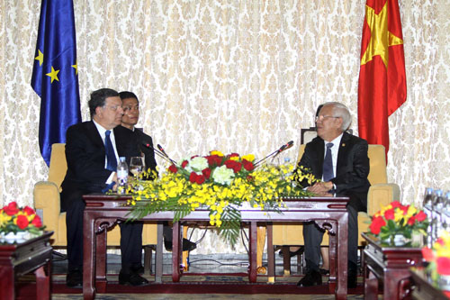Trước đó, ngay sau đến sân bay Tân Sơn Nhất, Chủ tịch Ủy ban châu Âu Jose Manuel Barroso đã có buổi gặp gỡ đại diện các doanh nghiệp châu Âu, Euro Cham và một số Tổng lãnh sự quán. Ông Jose Manuel Barroso cho biết: Liên minh châu Âu (EU) đánh giá cao quan hệ hợp tác đối tác toàn diện với Việt Nam.