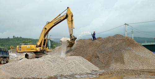 Vật liệu được tập kết phục vụ thi công.