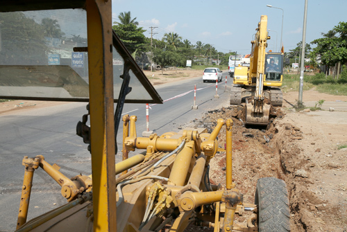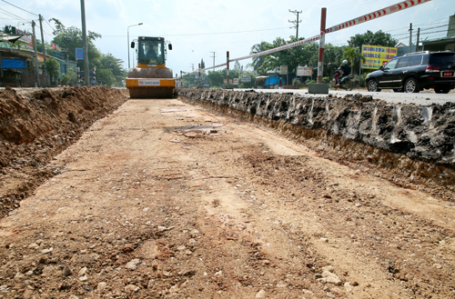 Một đoạn đường Quốc lộ 1A được đào sâu làm lại cốt đường trên địa bàn tỉnh Đồng Nai.