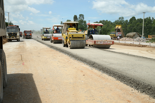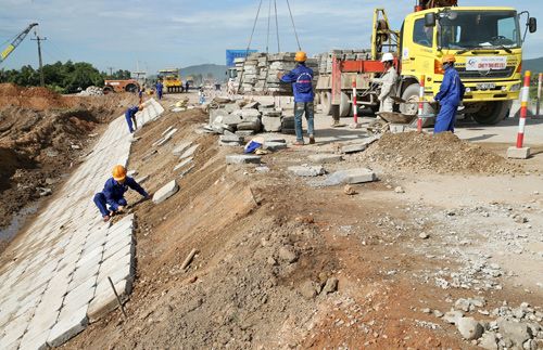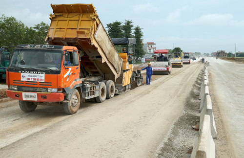 Tranh thủ những ngày nắng, phương tiện của các đơn vị thành viên Tổng công ty 319 đẩy nhanh tiến độ thi công trên các tuyến đường Quốc lộ 1A.