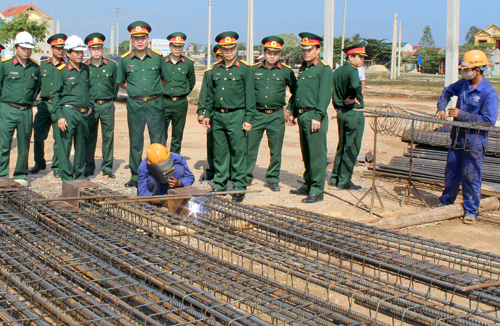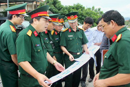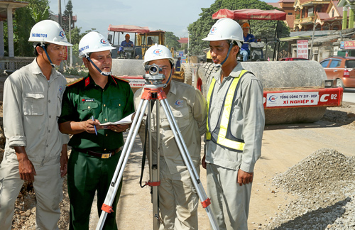 Đại tá Phùng Quang Hải, Bí thư Đảng ủy, Chủ tịch Hội đồng thành viên Tổng công ty 319 (người đứng thứ 5 từ trái qua phải) kiểm tra thi công trên tuyến đường Bình Thuận - Đồng Nai.