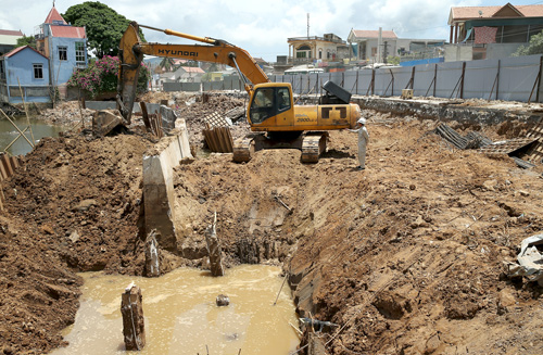 Thi công đắp đất mang cống.