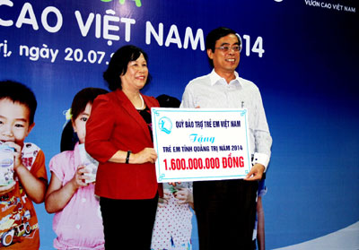 Tháng 7 này, về với Quảng Trị, không chỉ có những ly sữa, mà Qũy Bảo trợ trẻ em Việt Nam còn tặng 1,6 tỷ đồng cho trẻ em có hoàn cảnh khó khăn, gia đình chính sách của tỉnh Quảng Trị. Cùng với đó, Công đoàn Thông tấn Xã Việt Nam đã vận động các cán bộ, công chức, viên chức đóng góp số tiền 50 triệu đồng để tặng cho các cháu là con cán bộ, chiến sĩ, ngư dân tỉnh Quảng Trị, đang kiên trì bám biển, khẳng định và gìn giữ chủ quyền biển đảo thiêng liêng của Tổ quốc.