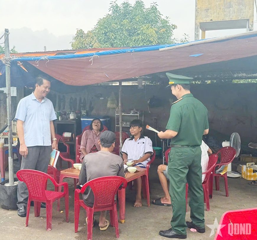 | Cán bộ Đồn Biên phòng Cần Thạnh (Ban chỉ huy Bộ đội Biên phòng TP Hồ Chí Minh) cùng cán bộ địa phương đến khu dân cư tuyên truyền pháp luật. |
