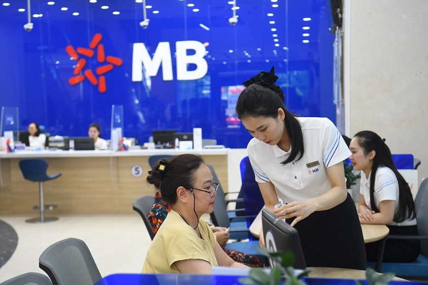 | Khách hàng giao dịch tại Ngân hàng Thương mại Cổ phần Quân đội (MB). Ảnh: PHƯƠNG ANH |