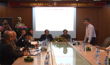 Đoàn báo chí kiều bào làm việc với Đài Tiếng nói Việt Nam. (Ảnh: quehuongonline.vn)