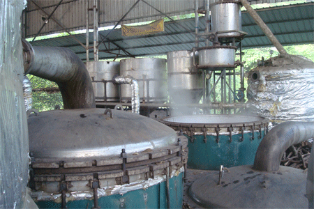| Thiết bị chế biến tinh dầu quế ở Nhà máy Dầu quế An Thịnh. |