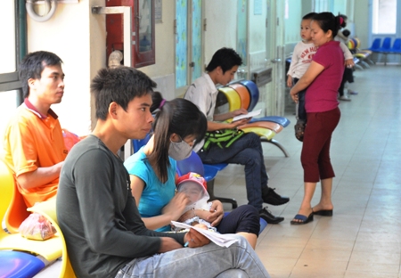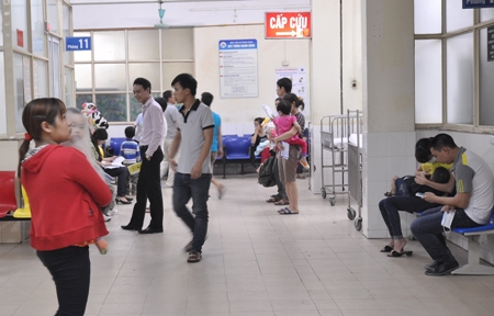 Dù là ngày nghỉ, nhưng tại các bệnh viện vẫn có nhiều bệnh nhân nhi chờ khám, trong đó có các trường hợp nghi nhiễm bệnh sởi.