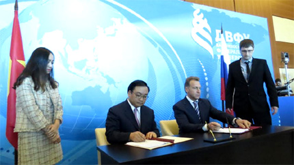 | Phó thủ tướng Chính phủ Hoàng Trung Hải và Phó thủ tướng Thứ nhất Chính phủ Liên bang Nga Igor Shuvalov ký kết thỏa thuận hợp tác. Ảnh: Thúy Hằng. |