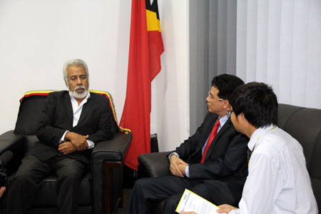 Ông Xanana Gusmao, Thủ tướng Đông Timor (ngoài cùng bên trái) trao đổi với phóng viên.