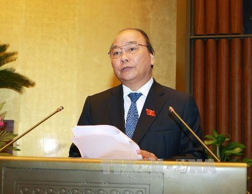 Phó Thủ tướng Chính phủ Nguyễn Xuân Phúc trình bày Báo cáo về việc thực hiện các nghị quyết của Quốc hội về chất vấn và trả lời chất vấn. Ảnh: Doãn Tấn - TTXVN.