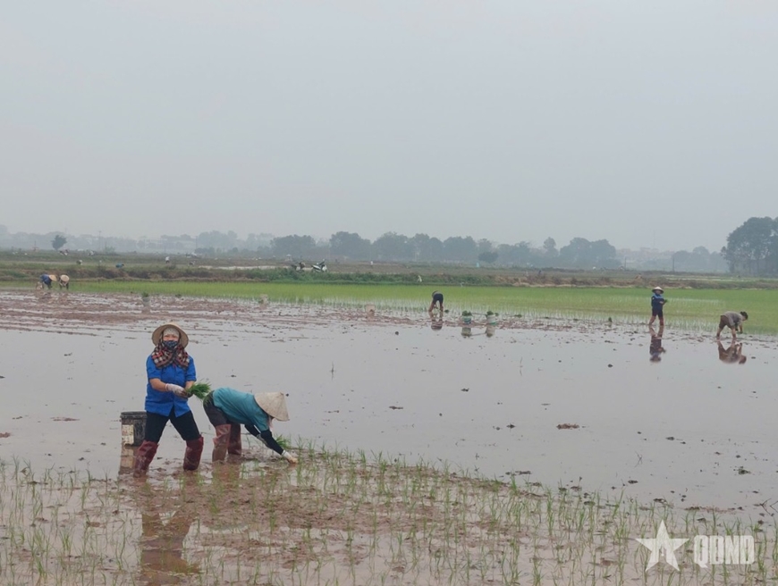 Có mặt tại cánh đồng Đình, thôn Can Bi (xã Xuân Lãng, tỉnh Phú Thọ) vào sáng 21-2 (mồng 5 Tết), chúng tôi cũng chứng kiến không khí lao động hối hả của bà con nông dân khắp các thửa ruộng. Bà Trần Thị Hải, thôn Can Bi cho hay, trước Tết, gia đình bà mới gieo cấy được một nửa diện tích, sau Tết, thời tiết ấm áp, bà tập trung cấy nốt 7 sào ruộng còn lại.