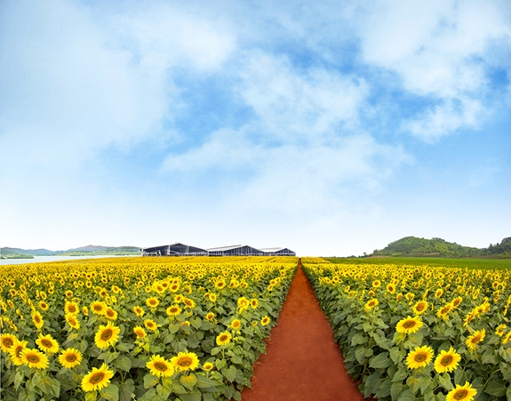Trang trại TH Nghệ An bên cánh đồng hướng dương. |