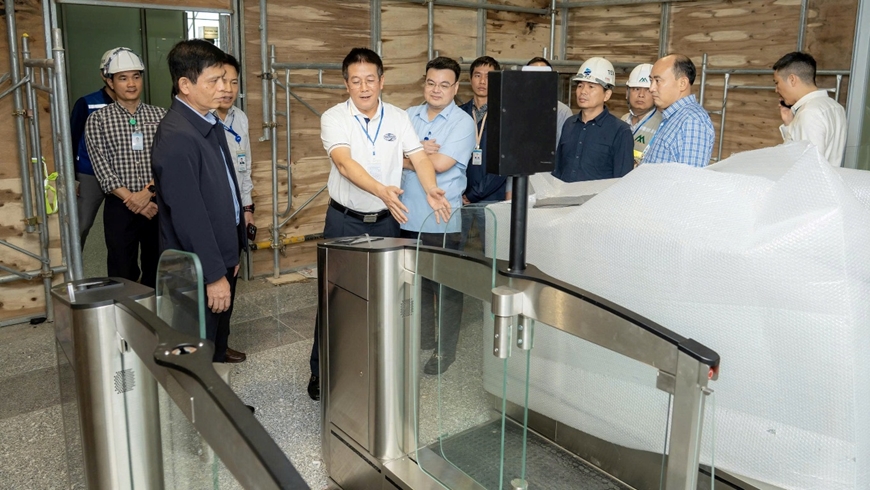 Đoàn công tác nghe báo cáo hiện trường, phương án nghiệm thu, vận hành thử, bàn giao và các giải pháp an toàn, an ninh, phòng cháy, chữa cháy, công nghệ thông tin trong giai đoạn hoàn thiện.