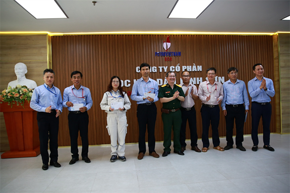 Lãnh đạo Công ty tặng quà tri ân cho CBCNV là con liệt sĩ đang làm việc tại NMLD Dung Quất. |