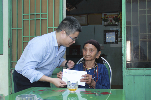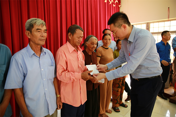 Đồng chí Khương Lê Thành - đại diện lãnh đạo Công ty trao quà tặng các gia đình thương binh liệt sĩ,
