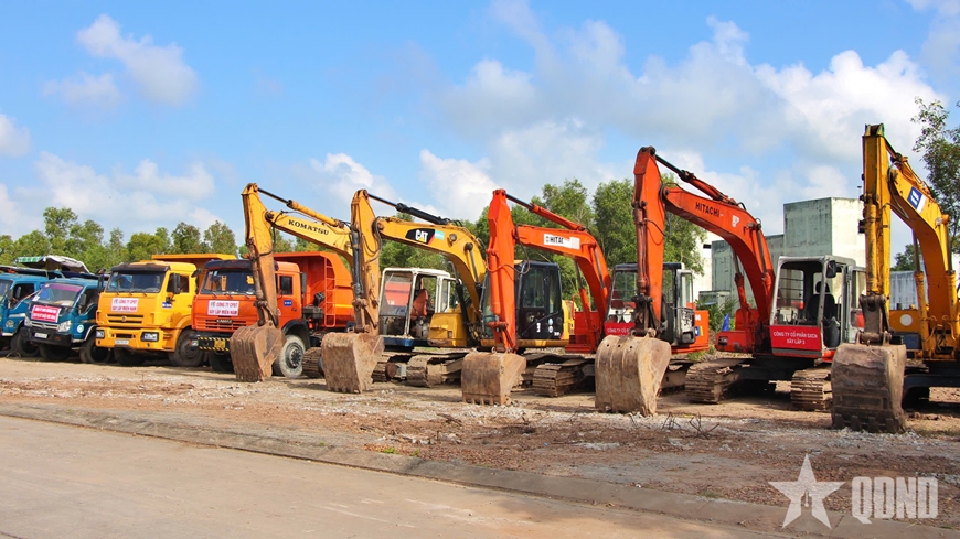 | Máy móc, nhân công được huy động sẵn sàng triển khai dự án sau khi phát lệnh khởi công. |
