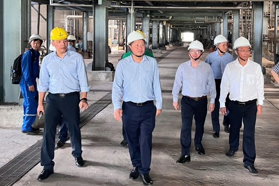 Chủ tịch HĐQT BSR Bùi Ngọc Dương dẫn đầu đoàn công tác rà soát lại việc tái khởi động lại Nhà máy NLSH Dung Quất. |