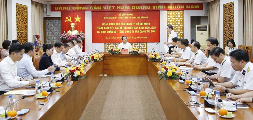 Dịp này, thay mặt lãnh đạo TP Hồ Chí Minh, đồng chí Nguyễn Văn Được và đoàn công tác đã gửi đến cán bộ, công nhân viên, người lao động Binh đoàn 20 - Tổng công ty Tân Cảng Sài Gòn những món quà đầu Xuân Bính Ngọ.