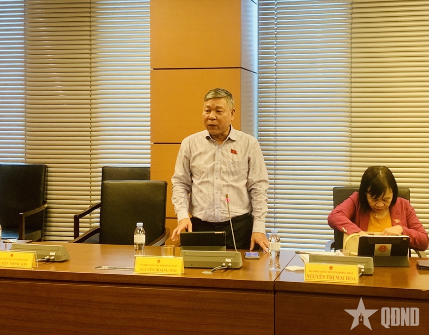 | Đại biểu Nguyễn Hoàng Mai (đoàn Đồng Tháp) phát biểu thảo luận. |
