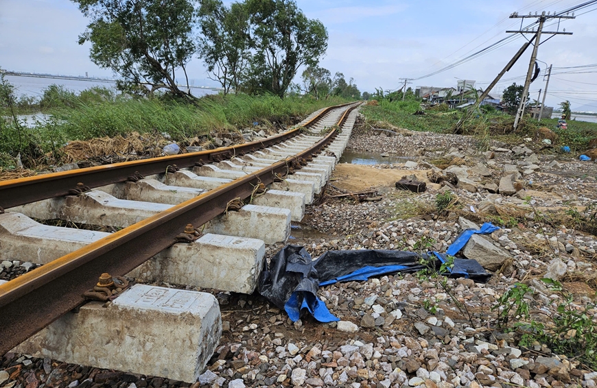 Một số đoạn đường sắt Bắc-Nam bị hư hỏng do thiên tai.