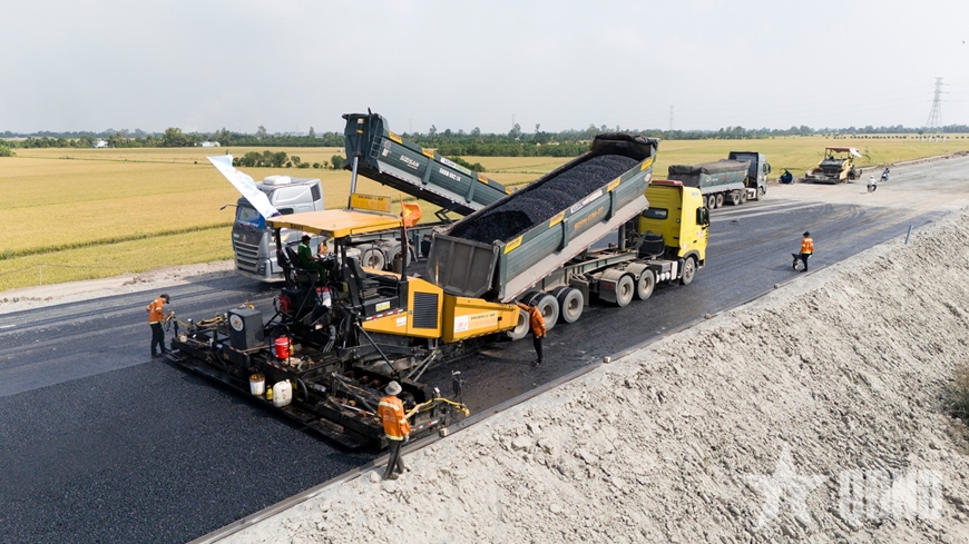 Dù là kỳ nghỉ Tết Dương lịch nhưng ngày 1-1, trên các tuyến cao tốc ở miền Tây, hàng trăm công nhân, cán bộ, kỹ sư vẫn bám công trường. Nhịp độ thi công diễn ra khẩn trương: Xe ben nối đuôi nhau chở đất đắp nền đường, máy đào, máy ủi, máy lu hoạt động liên tục, từng tốp công nhân làm việc tại nhiều mũi thi công khác nhau tạo nên một không khí lao động sôi động, hăng say ngay từ đầu năm mới.