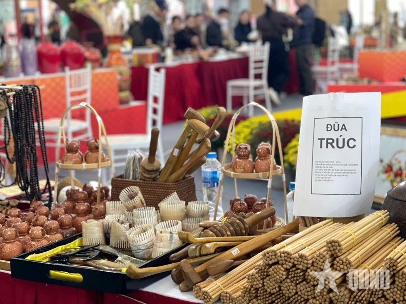 | Theo chia sẻ của đại diện gian hàng thủ công mỹ nghệ, sản phẩm được đặc biệt ưa chuộng là đũa Kim Giao được làm từ cây Kim Giao của rừng Cúc Phương, đũa buông (làm từ cây buông) và đũa trúc. |