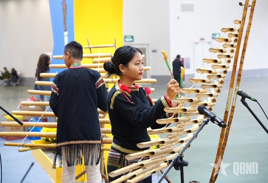 | Người dân và du khách cũng có cơ hội được trải nghiệm biểu diễn đàn t'rưng tại khuôn khổ hội chợ. |