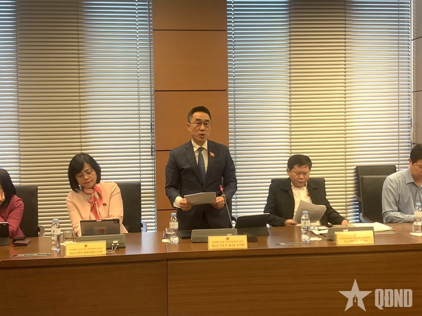 | Đại biểu Nguyễn Hải Anh (đoàn Đồng Tháp) phát biểu thảo luận tại tổ. |