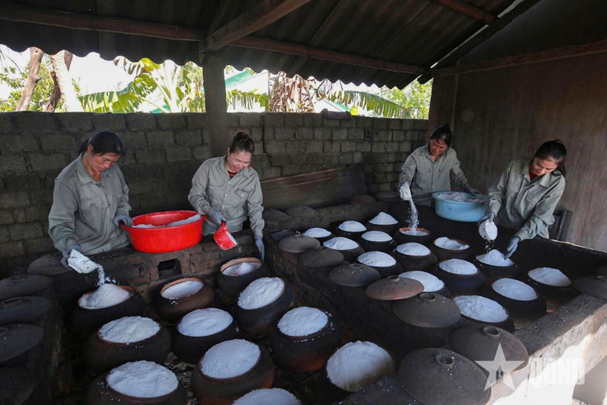 Hiện nay, Hợp tác xã đã sản xuất các sản phẩm từ muối hầm như muối hầm gia vị, muối hầm tôm, muối hầm chua cay, om muối ngự… Nhờ hướng đi mới, Hợp tác xã tạo việc làm cho 15 lao động với mức thu nhập 7 triệu đồng/tháng, đồng thời giúp hàng trăm hộ diêm dân có đầu ra ổn định.