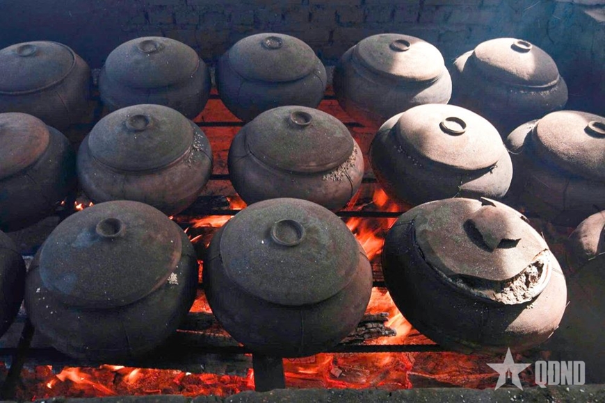 Quy trình làm muối hầm được ông Điện ví như “luyện ngọc”. Nguyên liệu là những hạt muối tinh khiết nhất từ vựa muối Quỳnh An, được phơi khô tự nhiên suốt 7-9 tháng để muối “chín”, ráo nước, giảm vị chát. Sau đó, muối được cho vào những chiếc nồi đất, xếp ngay ngắn trong lò, bắt đầu hành trình 14 giờ đỏ lửa. 7 giờ đầu mở vung để tạp chất bay hơi, 7 giờ sau đậy kín, hầm đều tay trong nhiệt độ ổn định. Người thợ canh lửa không rời mắt. Kết thúc, khối lượng muối chỉ còn 45-50%, nhưng đó là phần tinh túy nhất.