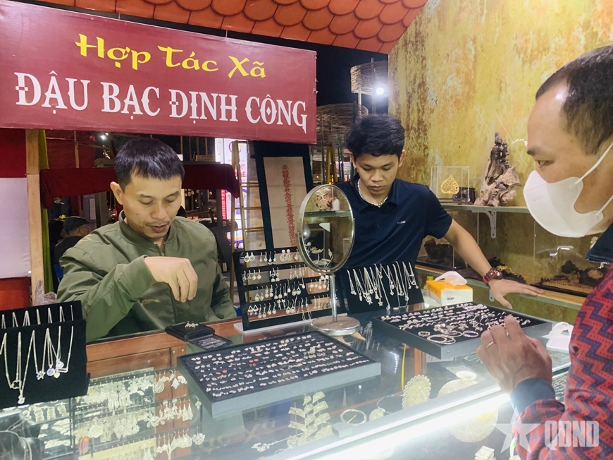 | Du khách thích thú với những sản phẩm làng nghề. |
