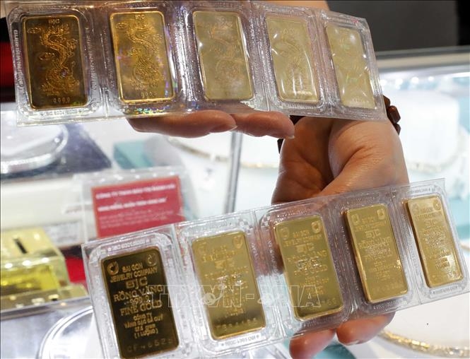 Giá vàng hôm nay (chiều 5-4): Vàng SJC giữ ngưỡng hơn 174 triệu đồng/lượng bán ra. Ảnh minh họa: TTXVN
