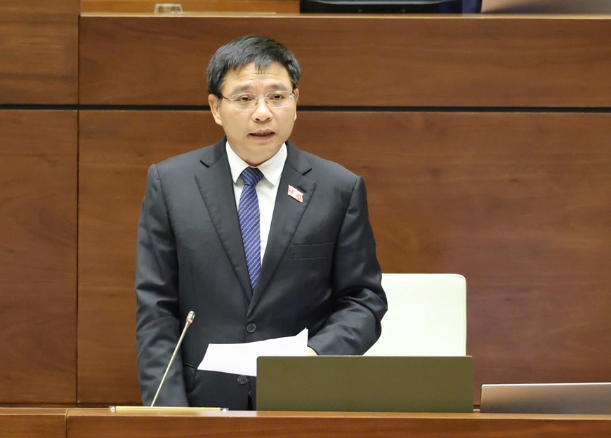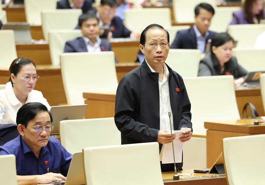 | Đại biểu Nguyễn Trúc Sơn (đoàn Vĩnh Long) phát biểu thảo luận. Ảnh: TRỌNG HẢI |