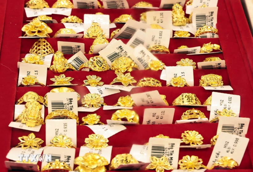 | Vàng trang sức bày bán tại Công ty vàng Bảo Tín Minh Châu. |
