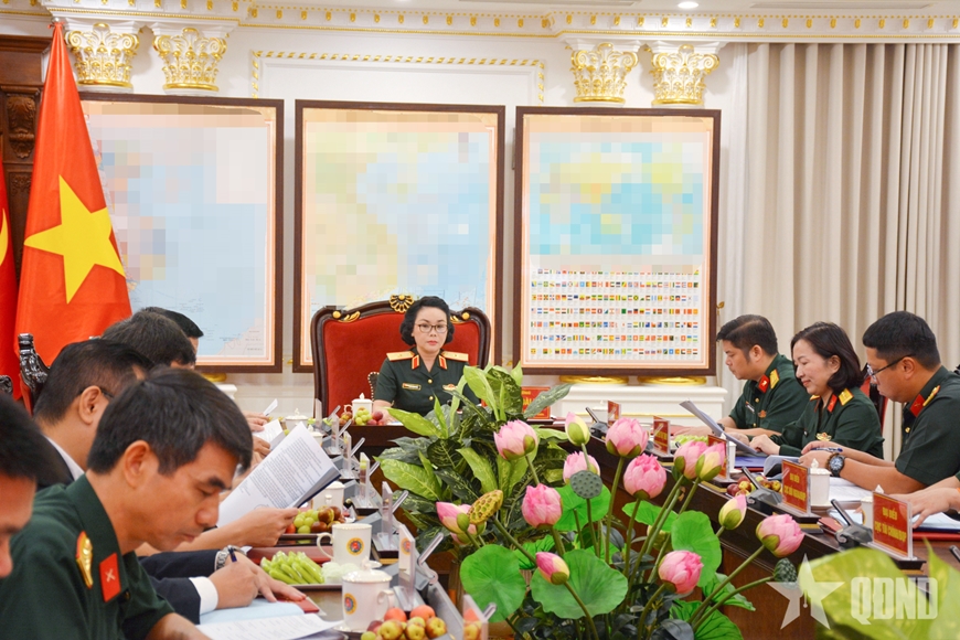 Thiếu tướng Phan Thị Hoài Vân chủ trì hội nghị.
